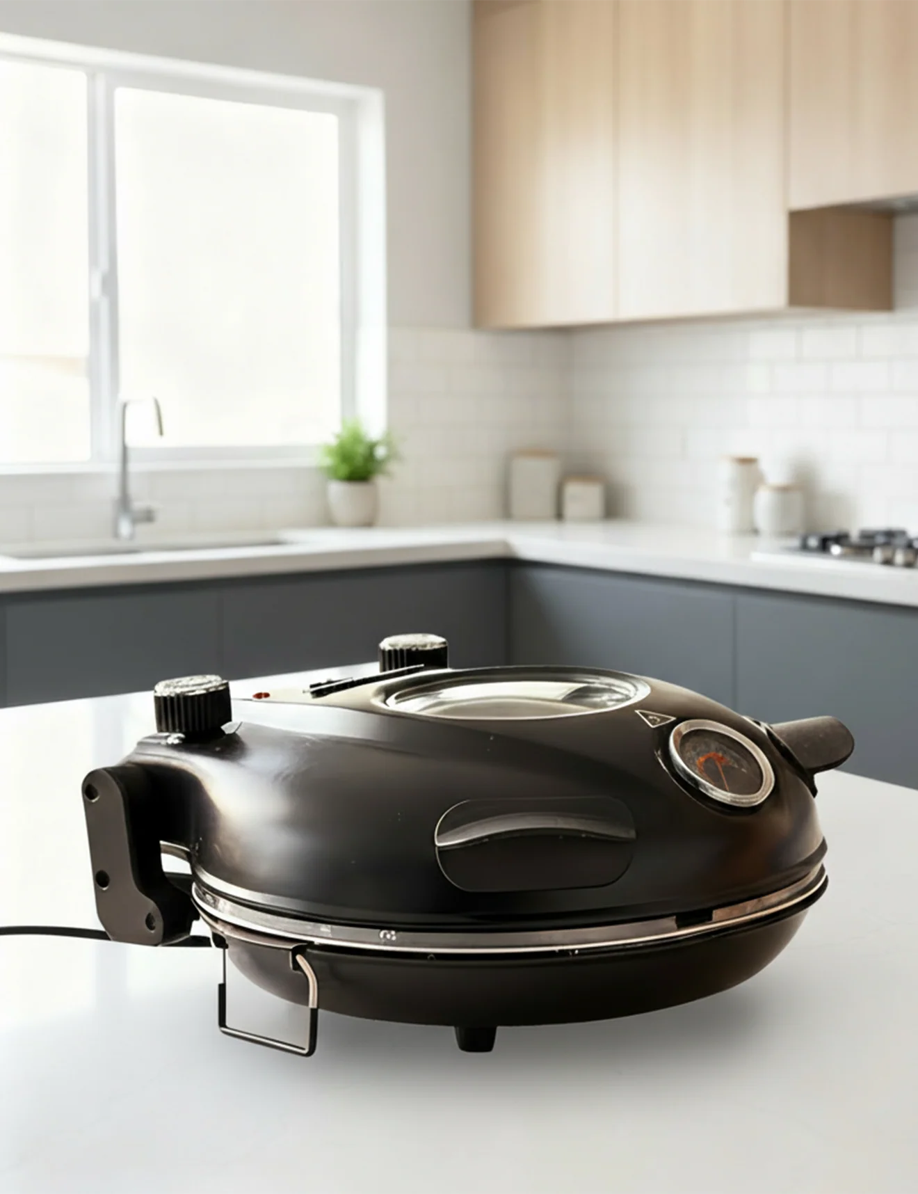 Experience authentic pizzeria-quality pizza right from your kitchen with our high-performance Countertop Pizza Oven. Reaching up to 900°F (450°C), it delivers perfectly crisp, golden crusts every time. The 12” removable ceramic stone with easy-lift handles ensures effortless cooking and serving, while the built-in viewing window lets you watch your pizza bake to perfection without losing heat. Designed with safety and versatility in mind, it’s ideal for pizzas, flatbreads, quesadillas, roasted veggies, and more—all in a compact, space-saving design that fits any kitchen.